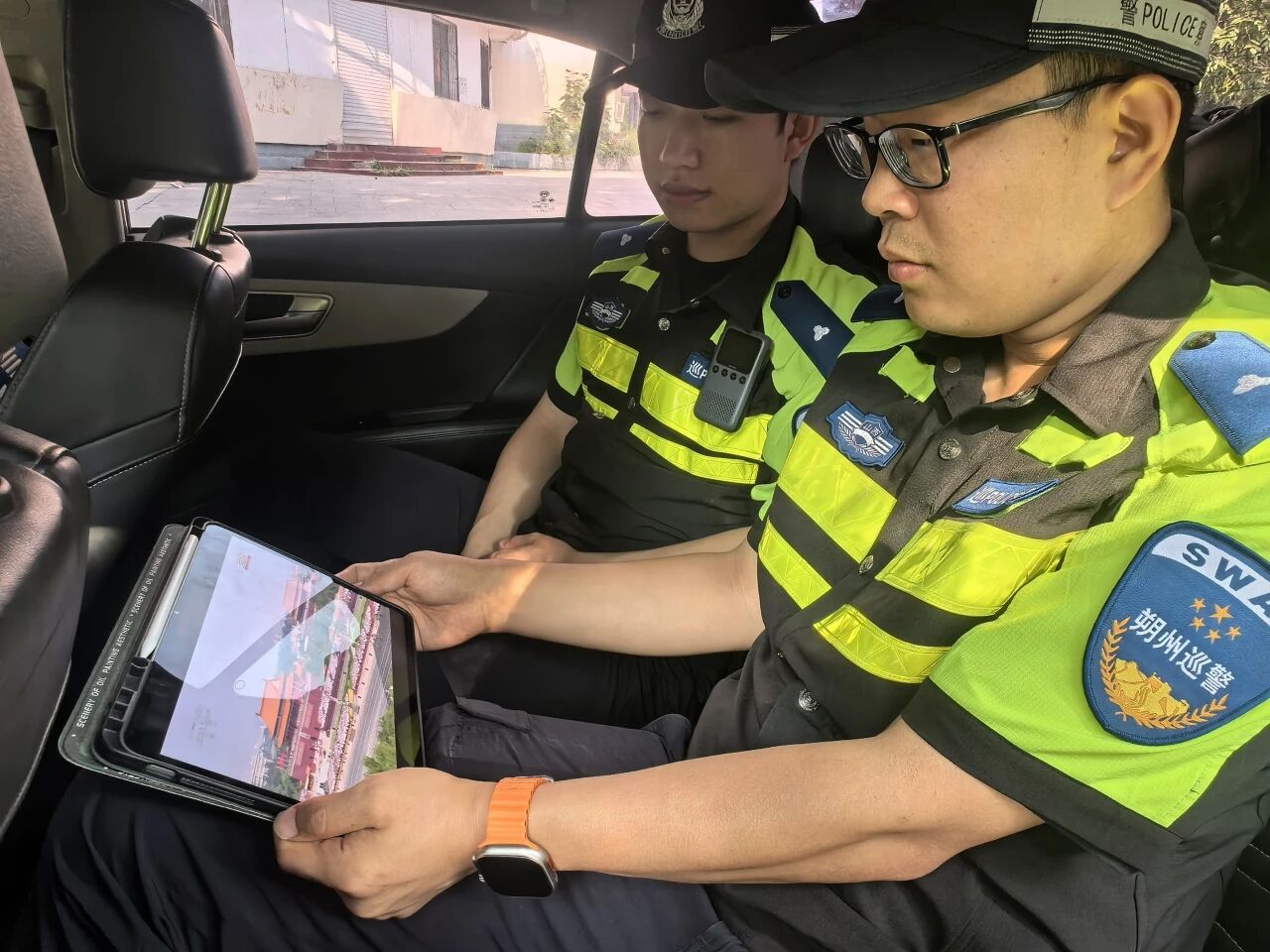 同时,坚守在执勤一线、各自工作岗位的民警辅警也利用工作间隙,通过手机直播观看,共同感受这一庄严而激动人心的时刻。