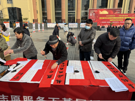 宣传教育活动还积极联合“时代风尚 墨韵清风”反邪教书法文艺志愿者服务下基层活动,来自四川省文学艺术界联合会、成都市文艺志愿者协会的书法家到场为群众书写新春对联,旨在以正能量思潮引领群众远离邪教、以优质文化内涵抵御邪教渗透。
