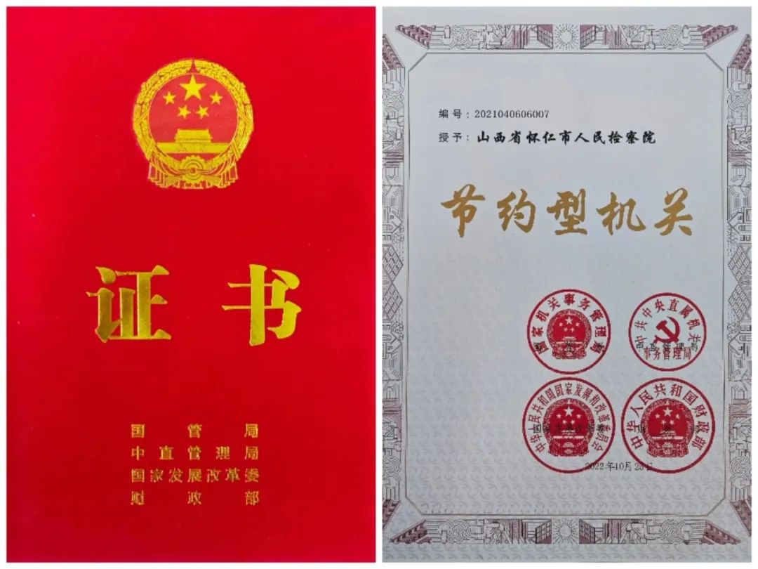 近日,怀仁市人民检察院被国家机关事务管理局、中共中央直属机关事务管理局、国家发展和改革委员会、财政部联合授予“节约型机关”荣誉称号。