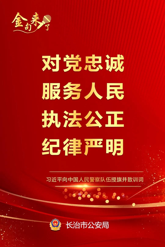 一年来,长治市公安机关和广大公安民警牢记习近平总书记嘱托,坚持把学习宣传贯彻习近平总书记重要训词精神作为首要政治任务,高举习近平新时代中国特色社会主义思想伟大旗帜,增强“四个意识”、坚定“四个自信”、做到“两个维护”,牢牢把握“对党忠诚、服务人民、执法公正、纪律严明”总要求,把习近平总书记的关怀嘱托转化为强大动力,忠实履行党和人民赋予的新时代使命任务,为奋力谱写长治高质量发展新篇章贡献“公安力量”。