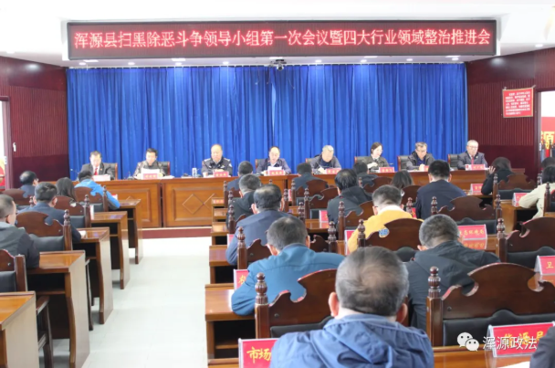 10月12日,浑源县委政法委组织召开全县扫黑除恶斗争领导小组第一次会议暨四大行业领域整治推进会。会议深入贯彻全国第一次扫黑除恶常态化推进会、省扫黑除恶领导小组第一次会议、市扫黑除恶斗争领导小组第一次会议精神和省、市相关文件精神,对全县平安建设、常态化推进扫黑除恶斗争、深化四大行业领域整治工作进行再动员、再部署,推动扫黑除恶斗争常态化工作走深走实。县委副书记、政府县长、政法委书记赵昱清出席会议并讲话,县领导翟宝龙,姜宝举,李雪飞及县政法、司法等相关单位负责人参加会议。县扫黑除恶斗争领导小组全体成员,部分成员单位和相关责任单位主要负责同志及各乡镇政法委员参加会议。