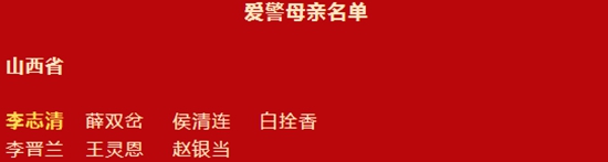 公安部、全国妇联日前对全国公安机关200名成绩突出女民警、297名好警嫂、296名爱警母亲予以通报表扬。长治市平顺县李志清被评为全国公安机关“爱警母亲”。
