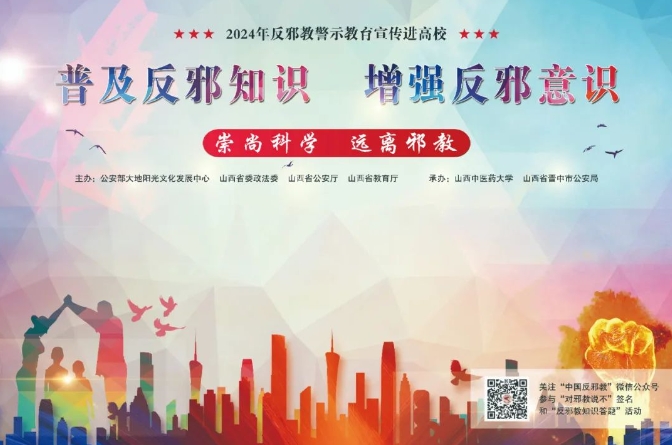 山西省公安厅有关负责同志介绍,今年以来,山西省公安厅在上级党委的坚强领导下,在广大人民群众的支持参与下,持续对邪教违法犯罪活动依法打击处置,持续加大全省反邪教警示教育宣传工作力度,打击邪教犯罪取得了明显成效。特别是持续加强校警合作,多次开展反邪教警示教育宣传进高校活动,针对高校学生特点,创作推出一批具有山西特色、符合时代潮流的反邪教文艺作品。通过形式多样的宣传,全省广大高校师生识邪辨邪、防邪反邪的意识和本领不断增强,全社会形成了抵制邪教的浓厚氛围。全省公安机关将统筹协调各方力量做好反邪教警示教育宣传这一基础性工作,凝聚全民反邪的强大合力。