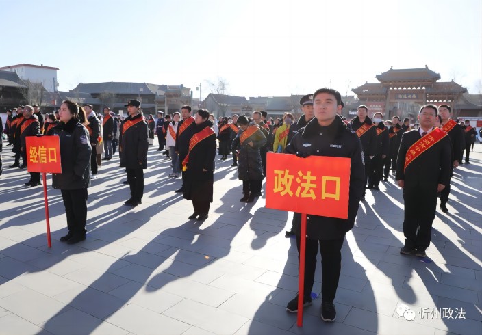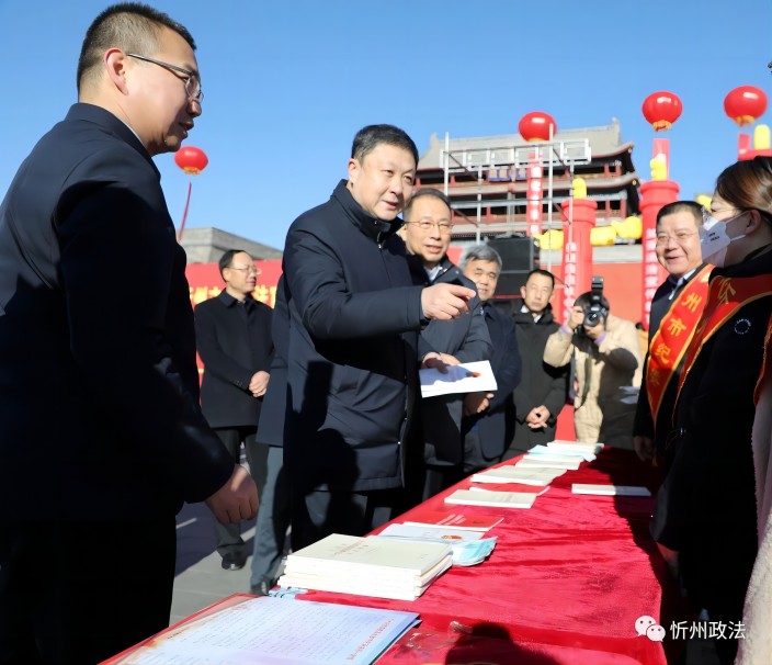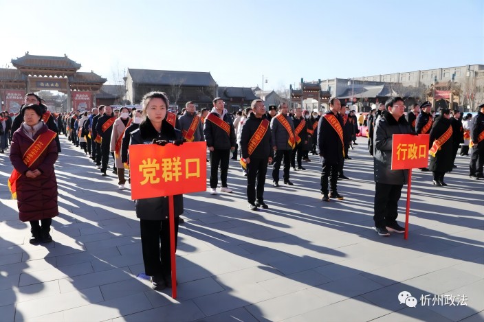 12月1日上午,忻州市在古城举行以“大力弘扬宪法精神 建设社会主义法治文化”为主题的“宪法宣传周”活动启动仪式。忻州市委常委、政法委书记、宣传部部长、市委全面依法治市办主任王琳玉讲话并宣布活动正式启动,忻州市政府副市长、市委全面依法治市委员会执法协调小组组长、市公安局局长史红波主持启动仪式。忻州市政府副秘书长边琳,市委全面依法治市委员会守法普法协调小组副组长以及成员单位负责同志,市行政口、政法口、金融口、文卫口、发改口、农口等八大口60个市直、企事业单位,以及社会各界群众等300余人参加活动。