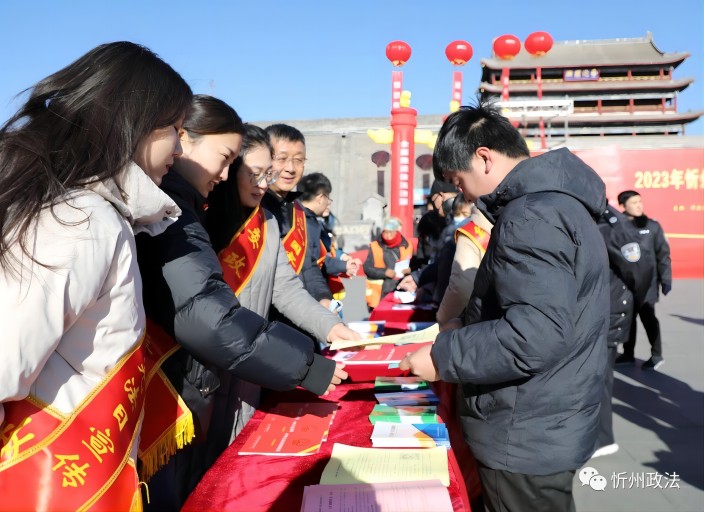 启动仪式后,忻州市司法局法治文艺宣传队进行了精彩纷呈的法治文艺节目表演,以"宪法进万家 法治强素能"为目标和主题,突出“宪法宣传、民法典宣传、乡村振兴、扫黑除恶”等主题,以喜闻乐见的形式吸引众多群众前来观看,在轻松愉悦的氛围里,大家受到了法律知识的洗礼。同时,各普法单位现场共设立了60个法律咨询台,悬挂横幅50余条,摆放各类法治宣传展板50块,共发出《中华人民共和国宪法》《中华人民共和国民法典》、扫黑除恶、反电信网络诈骗等各类法律宣传资料3万余份,普法扑克、手提袋、挂图、围裙等法治宣传用品3000余份,解答咨询150余人次,受教育群众达2000余人。
