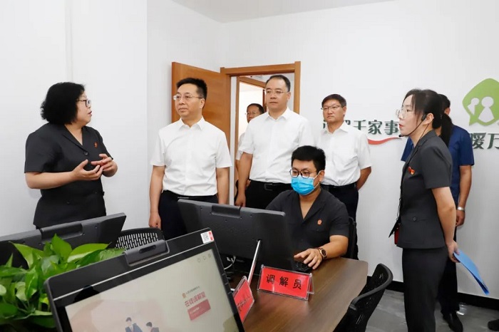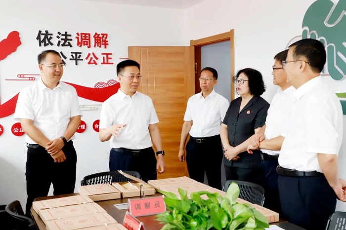 揭牌仪式结束后,栗向东及出席仪式的领导现场参观了定襄法院诉调对接中心,详细了解了诉调对接四大调解室的职能作用和运行情况。栗向东对中心建设取得的成绩给予充分肯定,并就诉调对接工作平台建设、完善机制、运行管理、经验培树等提出指导意见和具体要求。