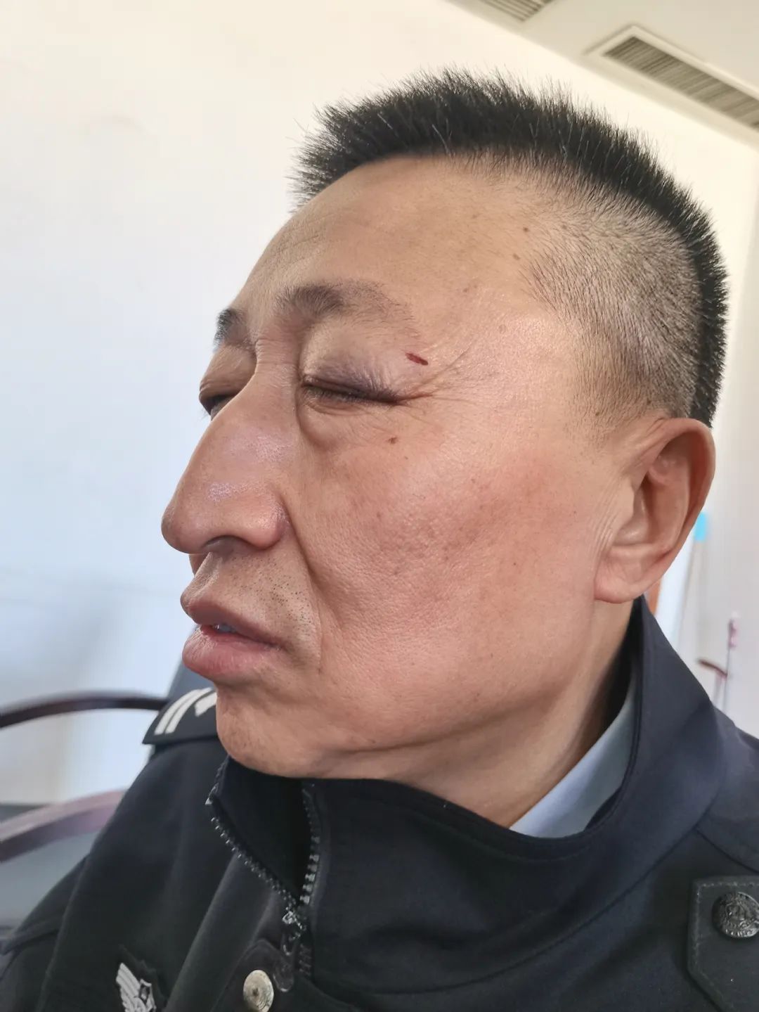 他被情绪激动的一方用头盔砸到左眉骨
