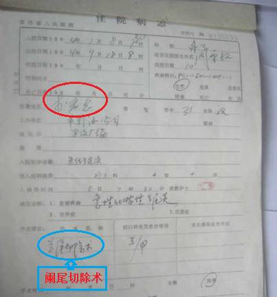 ▲李洪志在长春做阑尾手术时的住院病历