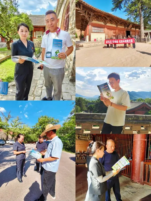 活动现场,法官干警向佛光寺工作人员及在场导游宣讲了生态环境保护、文物古建保护的重要意义,倡导大家自觉遵守并积极推广相关政策和法律法规,耐心解答了现场游客提出的各类生态环境保护问题。同时,向游客普及文物保护相关法律法规,鼓励大家积极投身生态环境保护与文物保护工作,共同守护绿水青山,守护好文物古建。