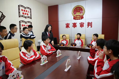 在法院讲解员的带领下,学生们依次参观了诉讼服务中心、家事文化长廊、阳光大厅、科技法庭、院史陈列室等场所,认真观看了中院全面建设专题片和中院干警自编自导自演的预防未成年人犯罪题材法治微电影《你依然是天使》,对法院的职能作用、机构设置、历史文化、信息化建设有了更为深刻的认识。