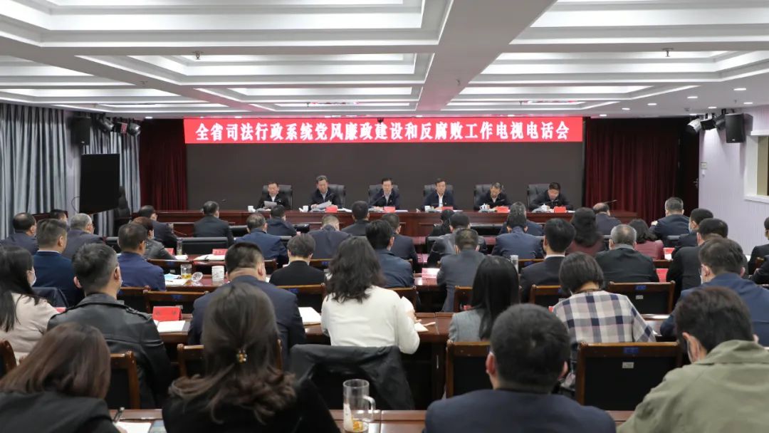 会议以电视电话形式召开,厅领导,厅机关二级巡视员,省委依法治省办秘书处及厅机关各处处长、副处长,驻厅直属各单位主要负责人在主会场参加会议。各市司法局、省监狱局、省戒毒局班子成员、中层以上干部及其直属单位主要负责人,省政法管理干部学院、司法学校班子成员、中层以上干部在各分会场参加会议。派驻纪检监察组全体同志分别应邀在主会场和分会场参加会议。