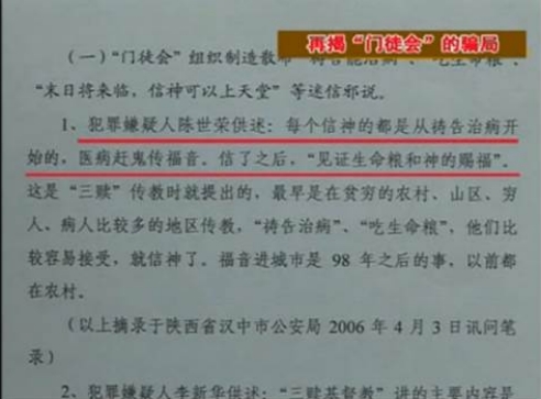 ▲“门徒会”头目供述“祷告治病”是“拉人”手段