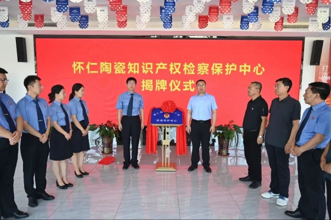 为深入学习贯彻习近平总书记重要讲话精神,落实《中共中央关于加强新时代检察机关法律监督工作的意见》和《知识产权强国建设纲要(2021一2035年)》,进一步加强知识产权检察保护工作,8月18日上午,怀仁市人民检察院在怀仁陶瓷e镇孵化中心举行知识产权检察保护中心揭牌仪式。怀仁市委常委、政法委书记何晓敏,怀仁市人民检察院党组书记、检察长闫全书,市法院、市公安局、市市场监管局、市工信局、市商务局以及怀仁市亿家亲陶瓷、雅宸瓷业相关负责人参加揭牌仪式。