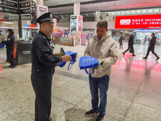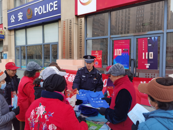 活动当天,红桥分局组织警力在区内大型商业综合体及轨道交通枢纽等繁华地段开展赶大集式宣传活动。