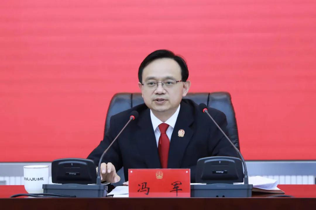冯军强调,要坚决把法院工作放到全省工作大局中谋划和推进,主动适应新形势新需求新任务,解放思想、实事求是、真抓实干、久久为功,为服务全方位推动高质量发展提供更加有力的司法服务和保障。要聚焦创新驱动,紧紧围绕发展壮大战略性新兴产业,深入推进“三合一”审判机制改革,构建知识产权纠纷多元化解机制,充分发挥知识产权保护示范基地作用,着力强化知识产权司法保护;要围绕转型发展,建立常态化“府院联动”机制,加强破产审判专业化建设,积极助力经济发展动能转换;要贯彻“两山”理念,加强“两山七河一流域”生态司法保护,依法审理环境公益诉讼和生态损害赔偿案件,用最严密的司法保护厚植高质量发展的生态底色;要深化平安建设,常态化开展扫黑除恶斗争,严厉打击各类违法犯罪活动,全力维护政治和社会安全;要坚守为民情怀,加强诉讼服务中心集约化建设,拓展多元解纷平台功能,打造共建共治共享的社会治理格局,不断提升人民群众的获得感、幸福感、安全感;要落实“六最”要求,依法保护企业自主经营、公平竞争,加大产权司法保护力度,审慎采用查封、扣押、冻结等强制措施,全面创优营商环境;要始终坚持严的主基调不动摇,把党的政治建设摆在首位,深入推进法院系统队伍教育整顿,持续深化司法体制改革,打造服务全方位推动高质量发展的过硬法院队伍,为实现省第十二次党代表大会描绘的宏伟蓝图贡献司法力量。